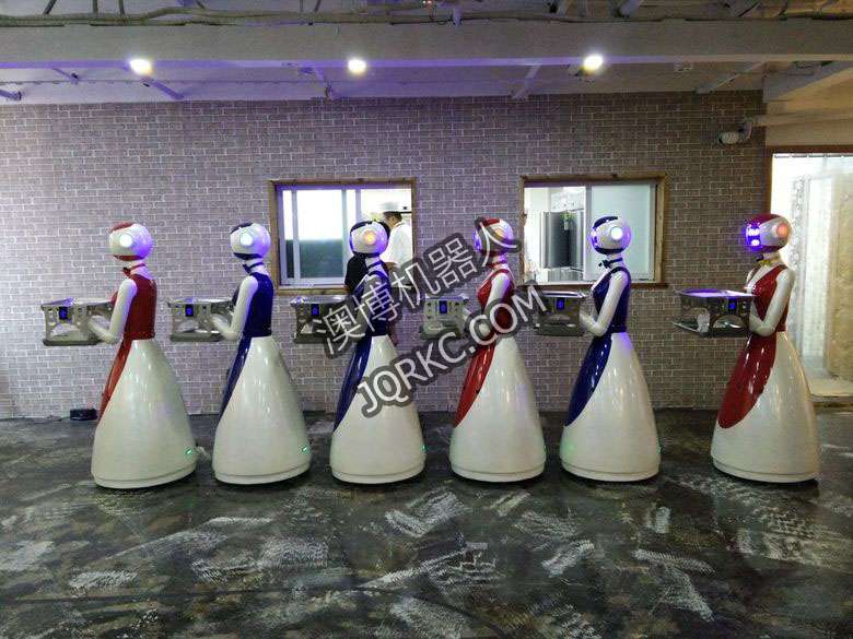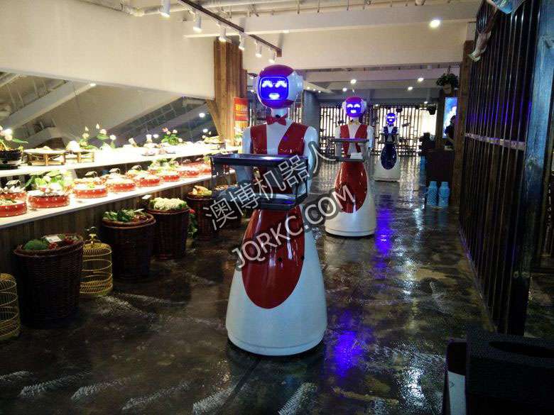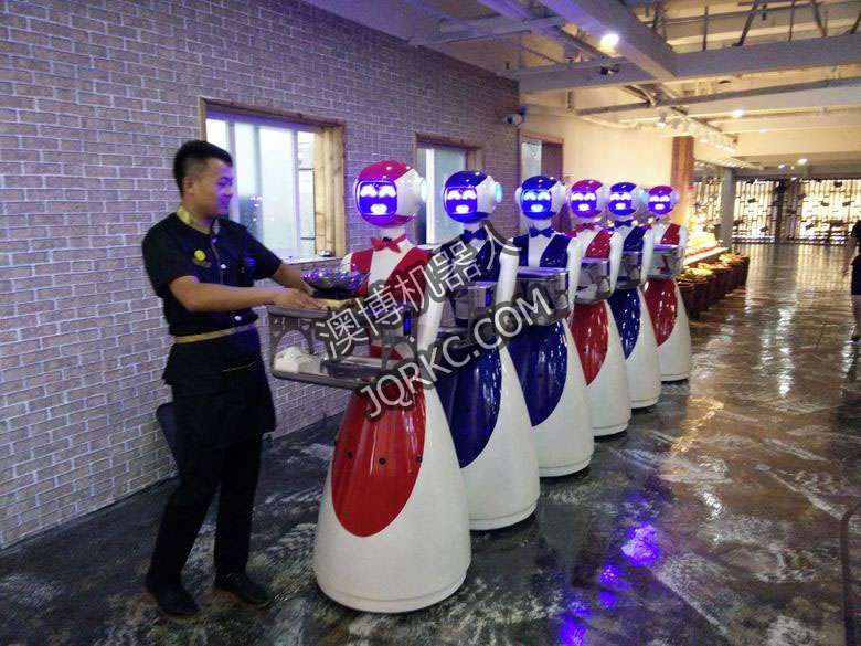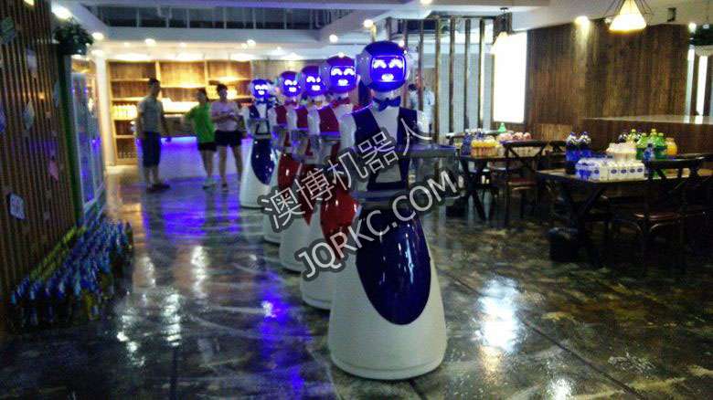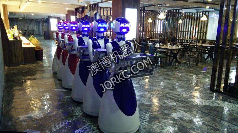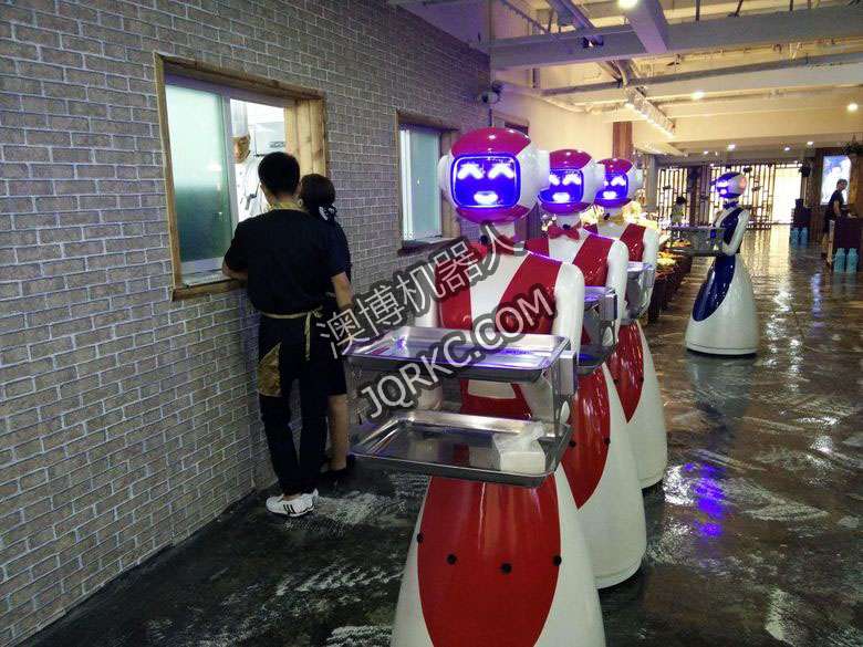 機器人餐廳使用六臺送餐機器人現(xiàn)場