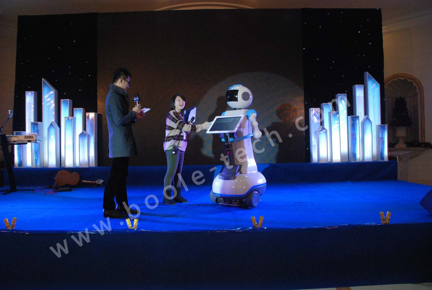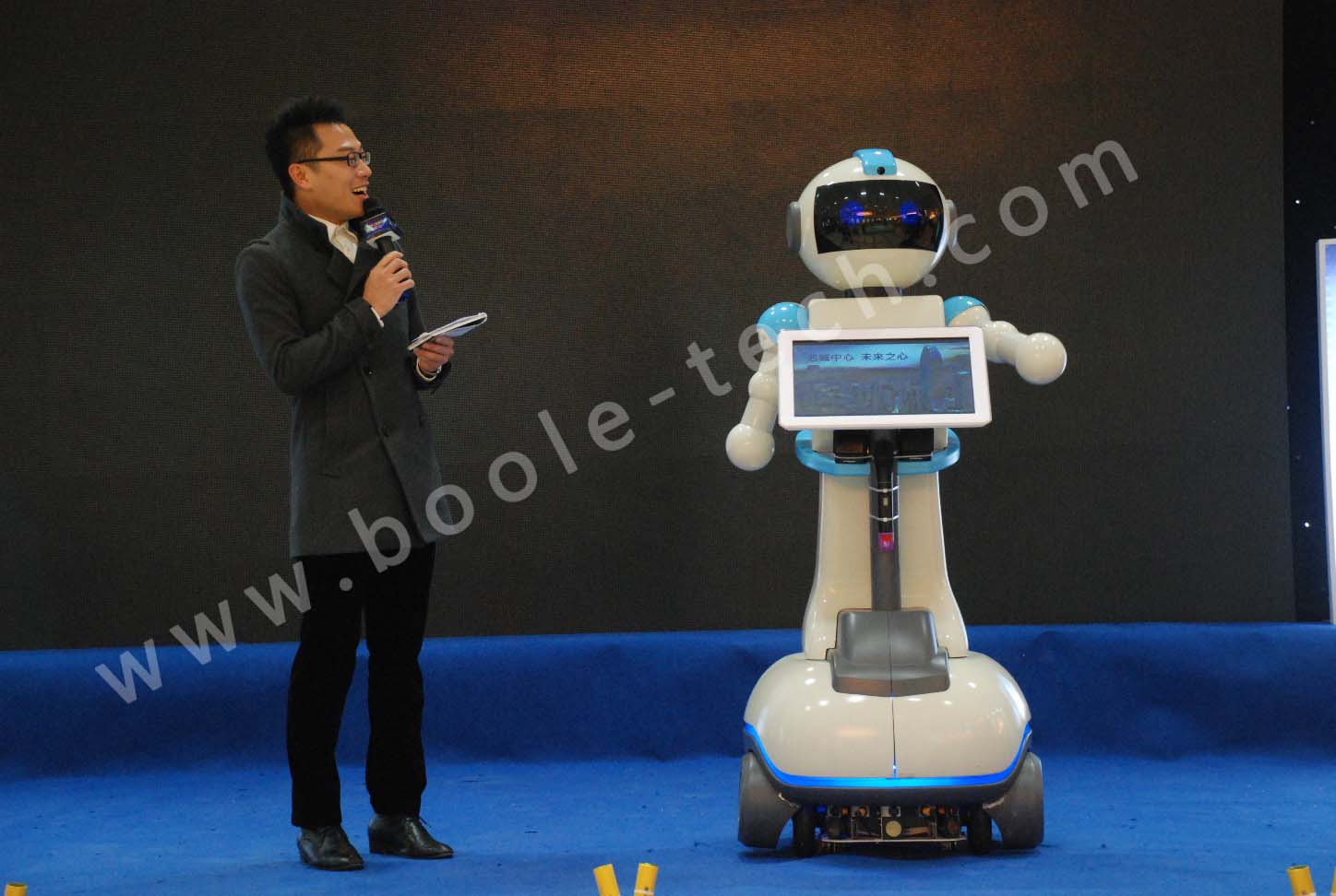 主要功能:語(yǔ)音播報(bào)、語(yǔ)音講解、語(yǔ)音交互。可結(jié)合實(shí)際需要輸入需要播報(bào)、講解、交互的各種專(zhuān)業(yè)信息,眼睛和嘴部由LED燈組成,說(shuō)話時(shí)LED等會(huì)亮亮起,配合語(yǔ)音內(nèi)容做出各種表情,可愛(ài)活潑,惹人喜愛(ài),胸前液晶顯示屏?xí)峁┎?bào)講解的文字內(nèi)容。 | |||