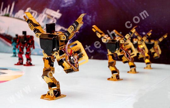 “外星戰士”們登上舞臺,一個個打開箱子,拿出了高科技機器人!!隨著一聲令下,機器人和外星人都跳起了鏗鏘有力的舞蹈,向地球人展示他們的武力。