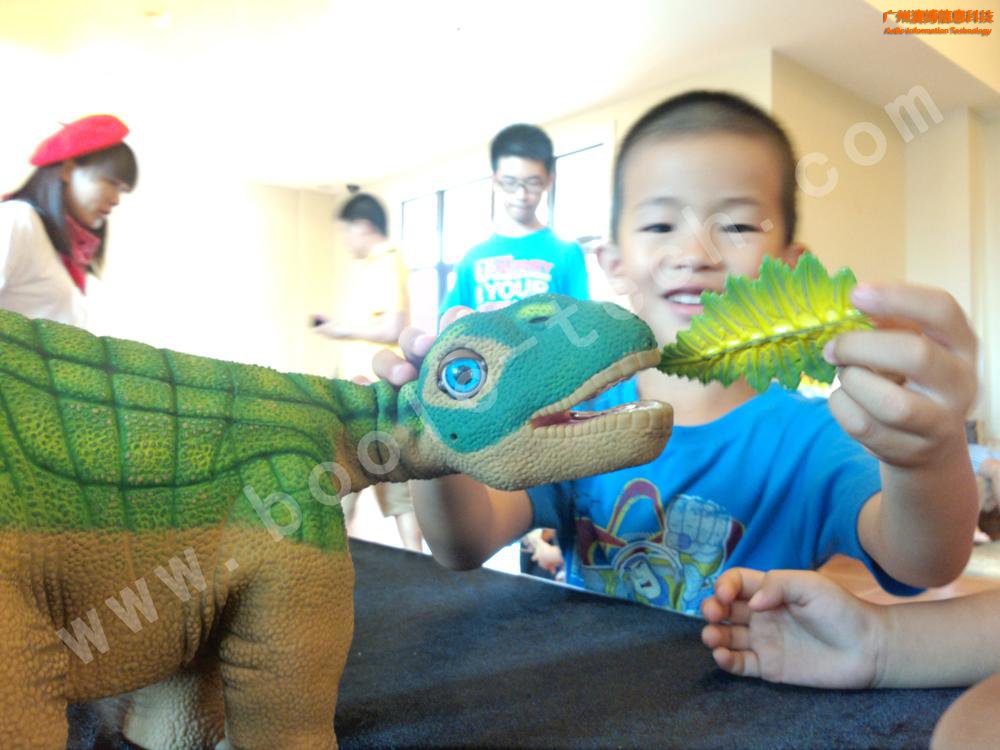 高仿真機(jī)器恐龍,全身多個(gè)傳感器。像個(gè)孩子一樣,只要多撫摸它,它就會搖搖尾巴,還試著學(xué)走路,餓了還會叫著向你要吃呢!
