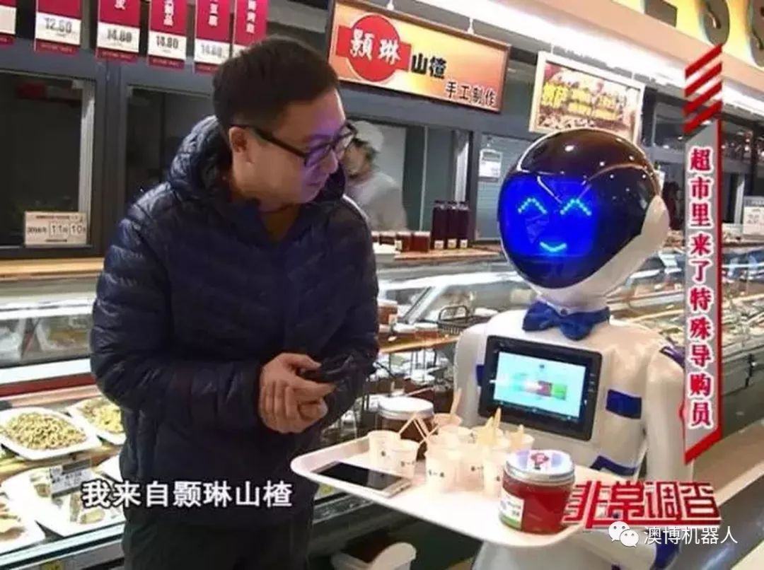圖為澳博服務(wù)機器人歡歡在超市使用